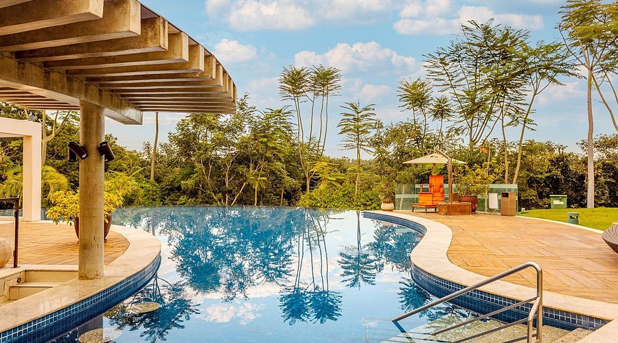Descrição: Eco resort com águas termais e estrutura sustentável.