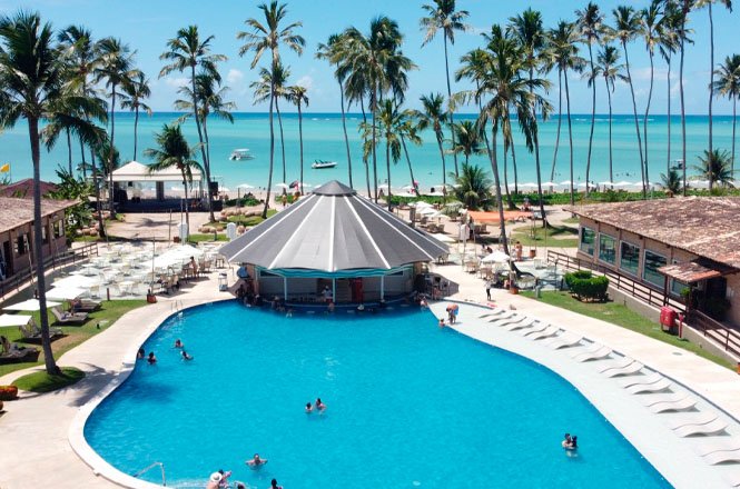– Descrição: Resort all inclusive em praia tranquila. Oferece piscina, quadra de tênis/vôlei/futebol, academia, sala de jogos e sauna.